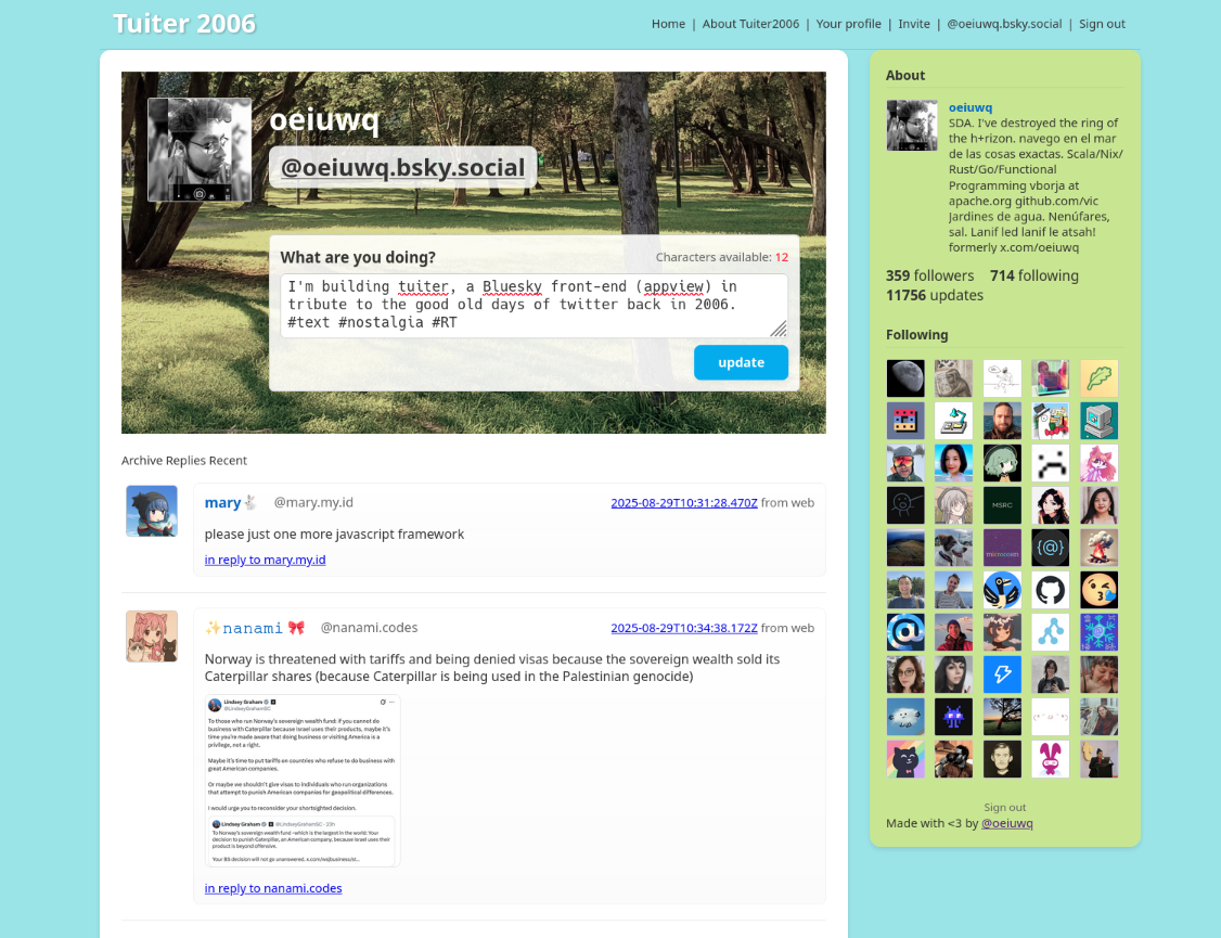Tuiter 2006 is a tribute to the early days of Twitter, using Bluesky's social protocol.